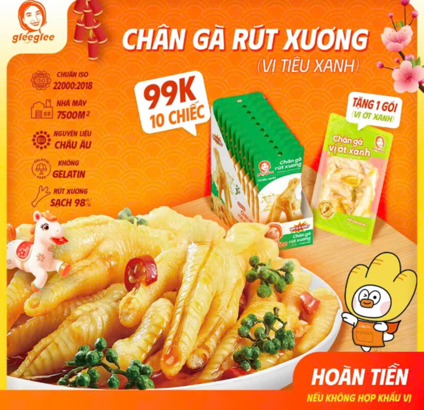 Chân gà đã được sơ chế sạch xương, còn nguyên sụn và da, ăn giòn siêu cuốn lưỡi.